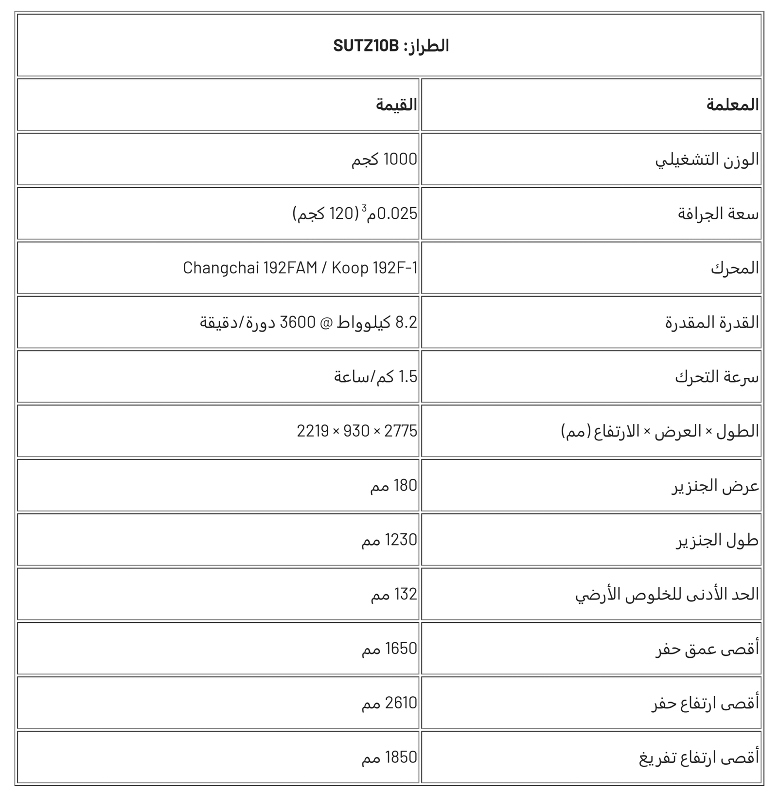 الحفارة الصغيرة SUTZ10B هي آلة خفيفة الوزن (1000 كجم) وعالية القدرة على المناورة مصممة للحفر على نطاق صغير وتنسيق الحدائق وأعمال المرافق. تعمل بمحرك Changchai 192FAM أو Koop 192F-1 (8.2 كيلو وات)، وتوفر أداءً موثوقًا به مع سعة دلو 0.025 متر مكعب وعمق حفر أقصى 1650 مم. عرضها فائق الضيق 930 مم ونصف قطر ذيلها 784 مم يجعلها مثالية للمساحات الضيقة، بينما تقلل المسارات 180 مم من اضطراب الأرض.