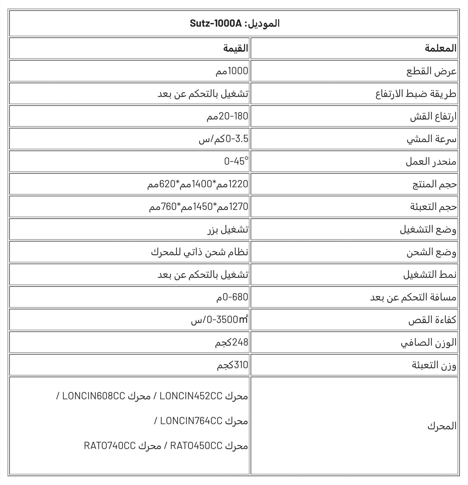SUTZ-1000A جزازة عشب زاحفة عالية التحمل تعمل بالتحكم عن بُعد، مصممة للاستخدامات التجارية في تنسيق الحدائق. تتميز بعرض قطع مذهل يبلغ 1000 مم وخيارات متعددة للمحركات القوية (LONCIN 452CC-764CC/RATO 450CC-740CC)، مما يوفر أداءً احترافيًا في القص بكفاءة تتراوح بين 0 و3500 متر مربع/ساعة. هيكلها المتين الذي يزن 248 كجم وقدرتها على الانحدار بزاوية 45 درجة يجعلها مثالية للتضاريس الوعرة، بينما يضمن التشغيل عن بُعد لمسافة 680 مترًا سلامة المشغل في الظروف الخطرة. يتيح نظام الشحن الذاتي وخزان الوقود الكبير سعة 15 لترًا تشغيلًا ممتدًا دون توقف متكرر.