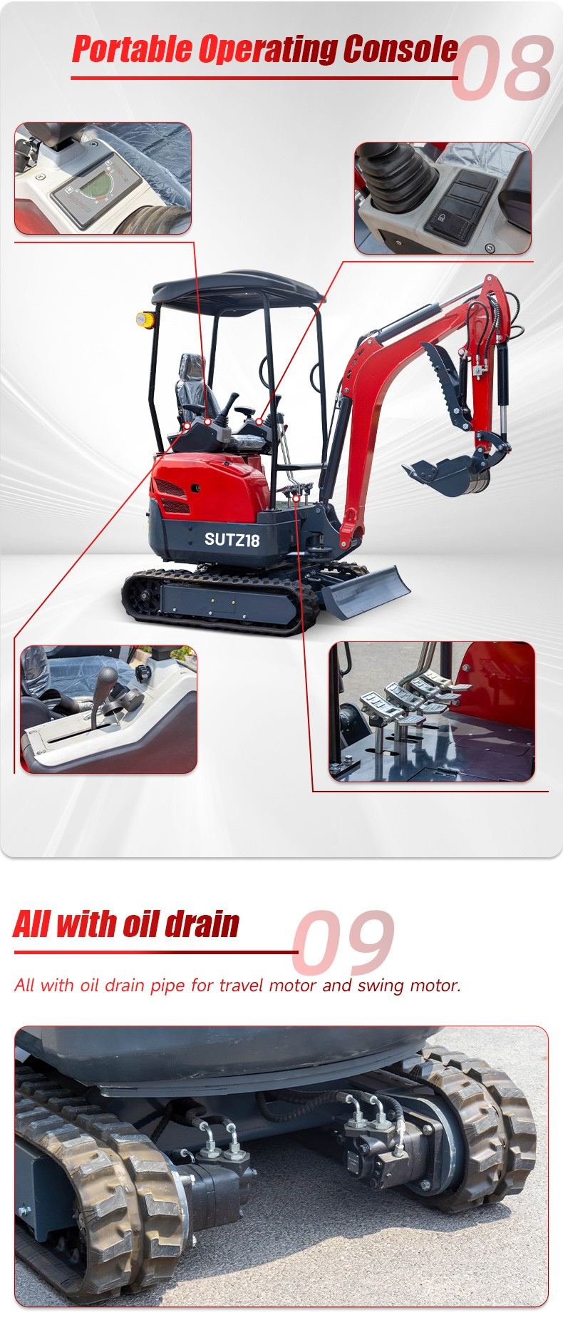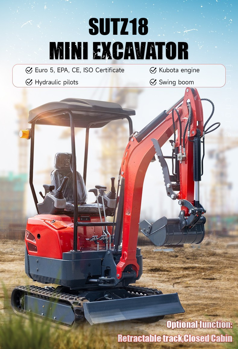 The SUTZ18 Mini Excavator combines Kubota-powered reliability with eco-conscious engineering, offering a versatile solution for light construction and landscaping. Its compact footprint, hydraulic precision, and optional rubber tracks make it ideal for sensitive terrains, while global certifications (CE/ISO) ensure broad applicability. Designed for efficiency and low maintenance, the SUTZ18 is a standout choice for contractors prioritizing maneuverability, compliance, and cost-effectiveness.