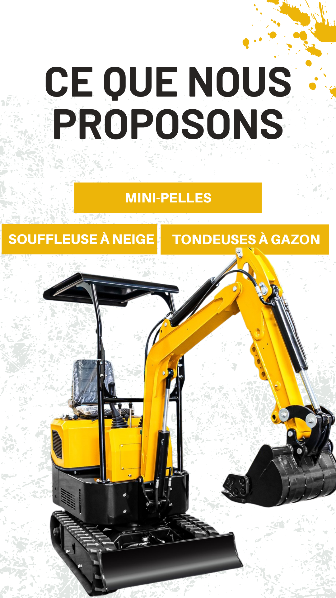 Des mini-excavateurs aux souffleuses à neige, notre gamme répond à la demande saisonnière et annuelle, avec un rapport qualité-prix imbattable.