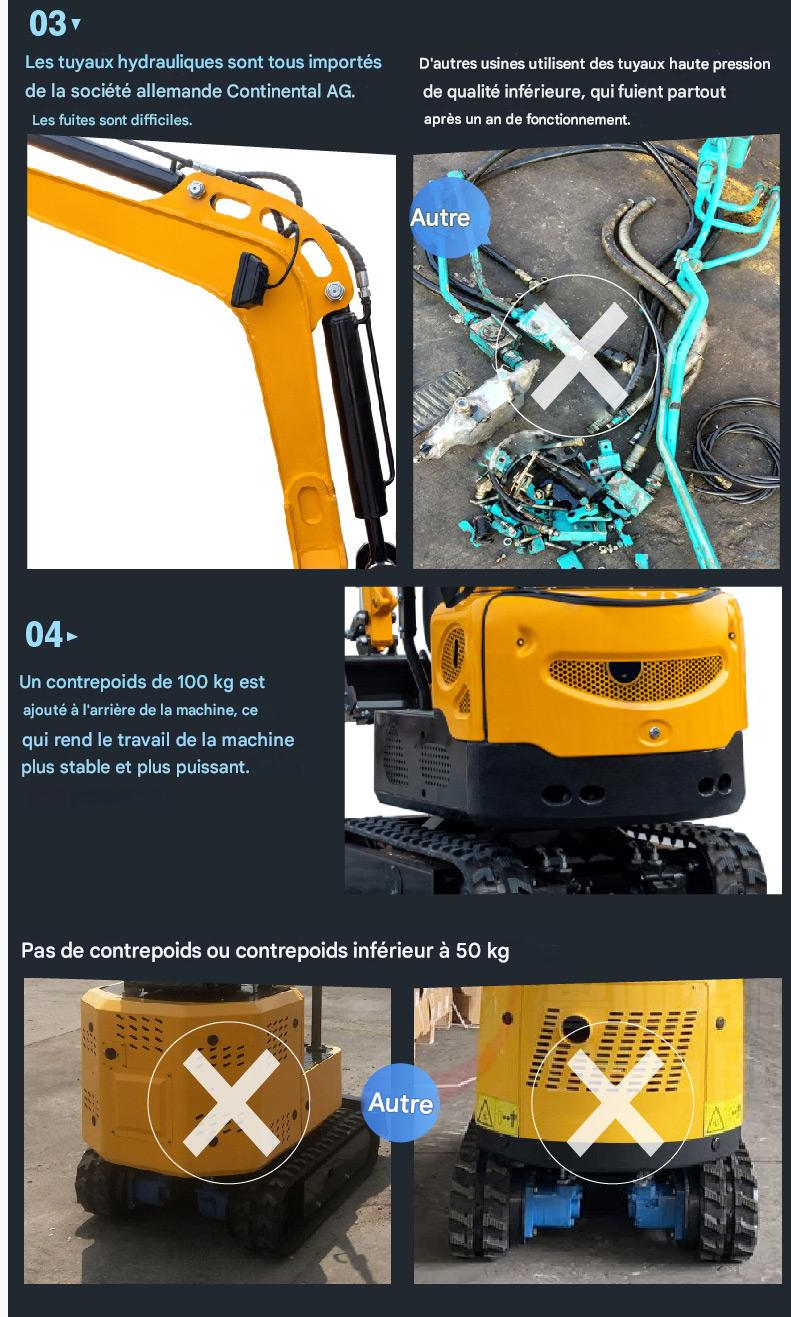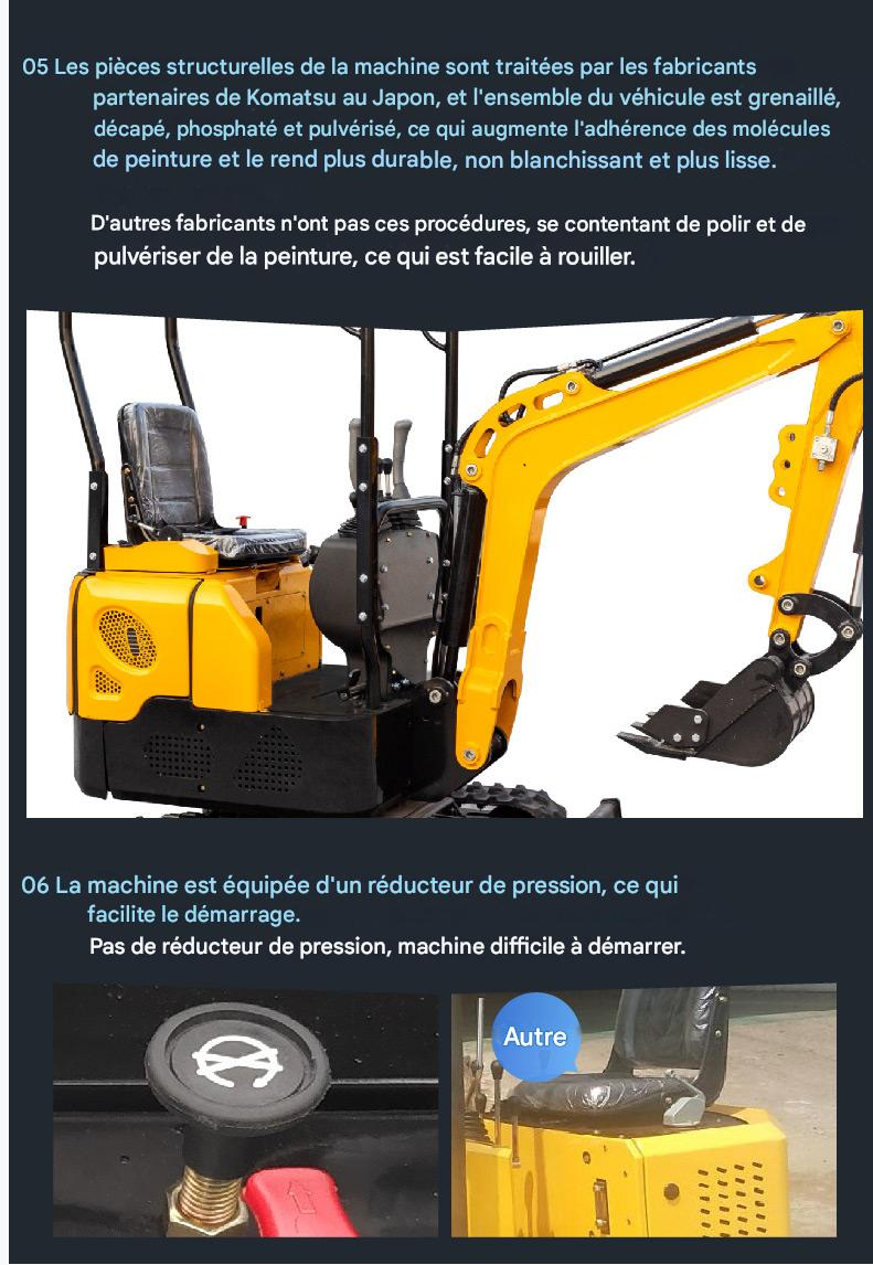 La mini-pelle SUTZ10G est une solution de terrassement ultra-compacte de seulement 890 kg, conçue pour une maniabilité maximale dans les espaces restreints. Équipée d’un moteur Koop 192 économe en carburant (10,2 kW), cette machine agile offre des performances surprenantes avec une profondeur de fouille de 1855 mm et une capacité de franchissement de 30°. Sa largeur étroite de 940 mm et son rayon de rotation arrière minimal de 810 mm permettent d’intervenir dans les zones urbaines exiguës, les jardins et les chantiers intérieurs inaccessibles aux engins plus imposants.