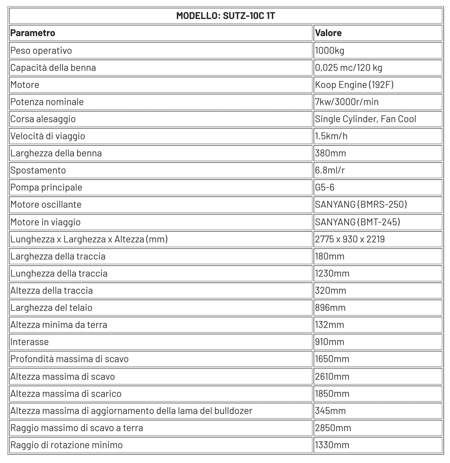 Il miniescavatore SUTZ-10C 1T è la soluzione compatta ed ecologica definitiva per scavi di precisione in spazi ristretti. Grazie al design leggero (1000 kg), all’elevata efficienza del carburante e alla scelta del motore opzionale, offre prestazioni affidabili per lavori di paesaggistica, agricoltura e edilizia leggera. Il suo ingombro ridotto (larghezza 930 mm) e la profondità di scavo di 1650 mm lo rendono ideale per progetti urbani in cui macchine più grandi non possono operare. Una scelta conveniente, manovrabile e a bassa manutenzione per gli appaltatori che danno priorità alla portabilità e all’efficienza.