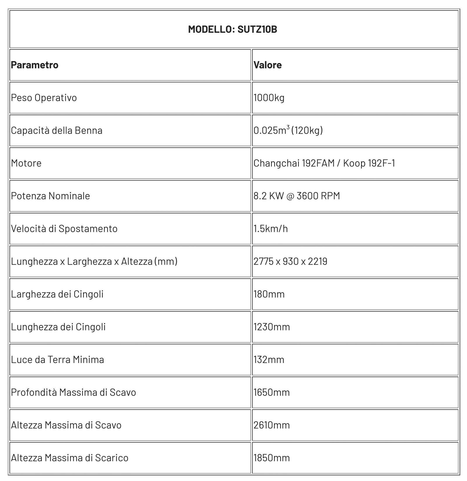 Miniescavatore SUTZ10B