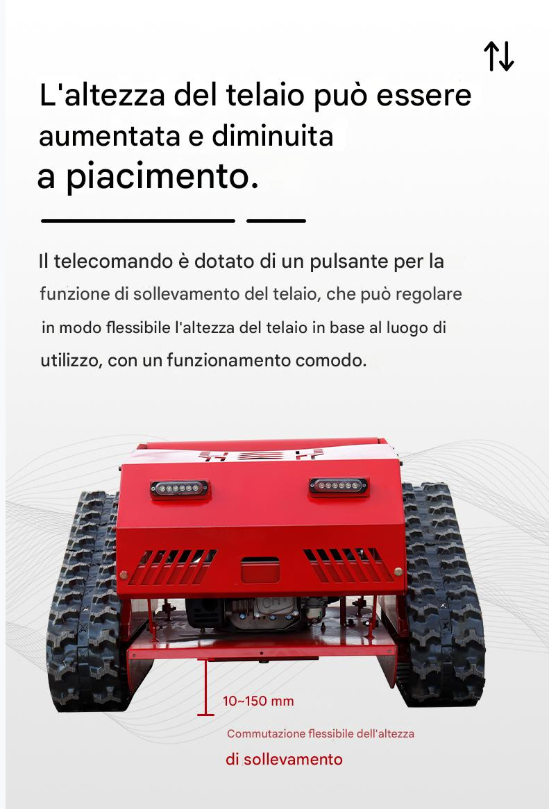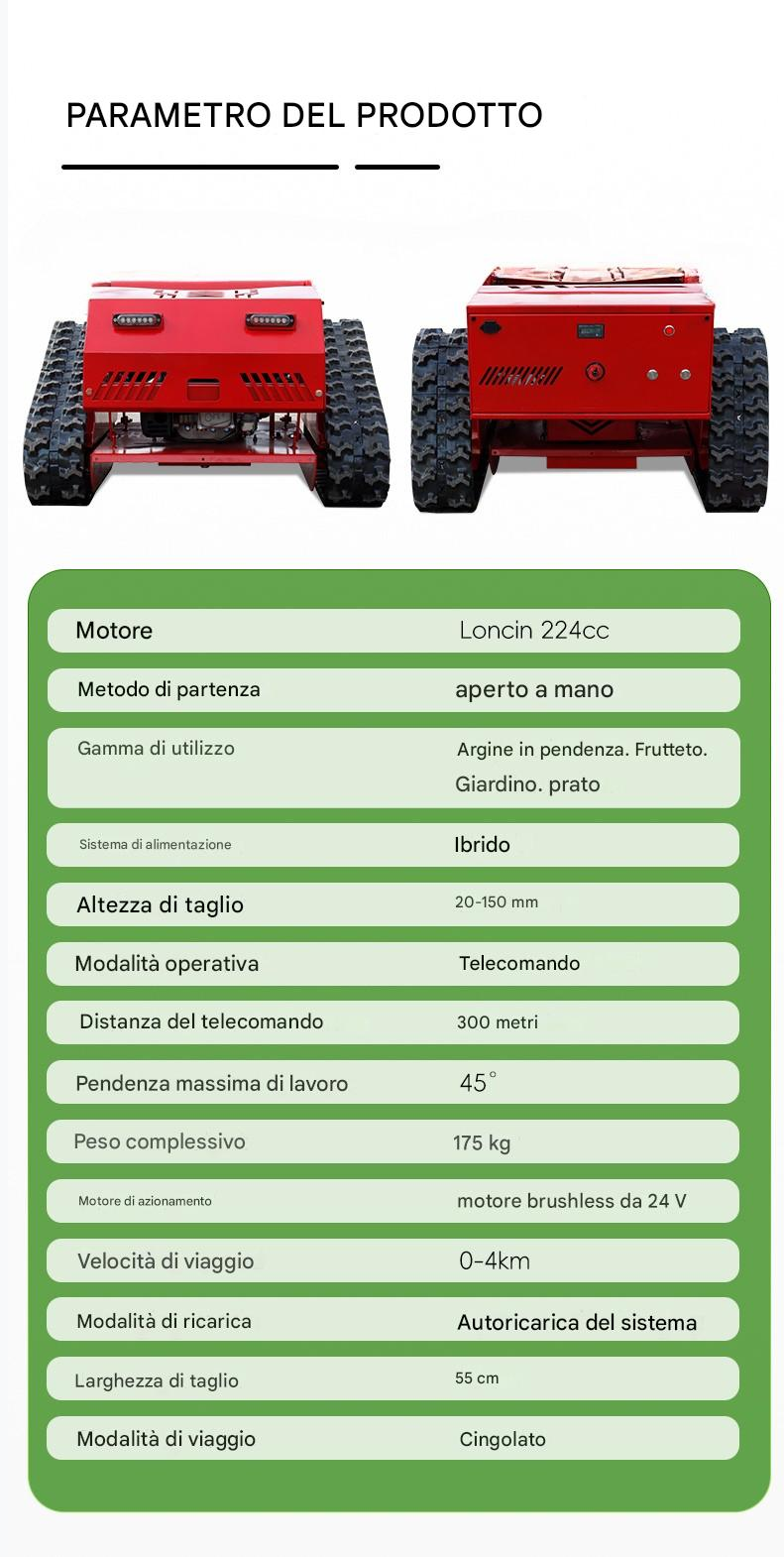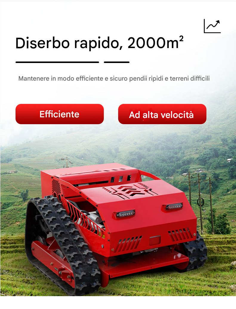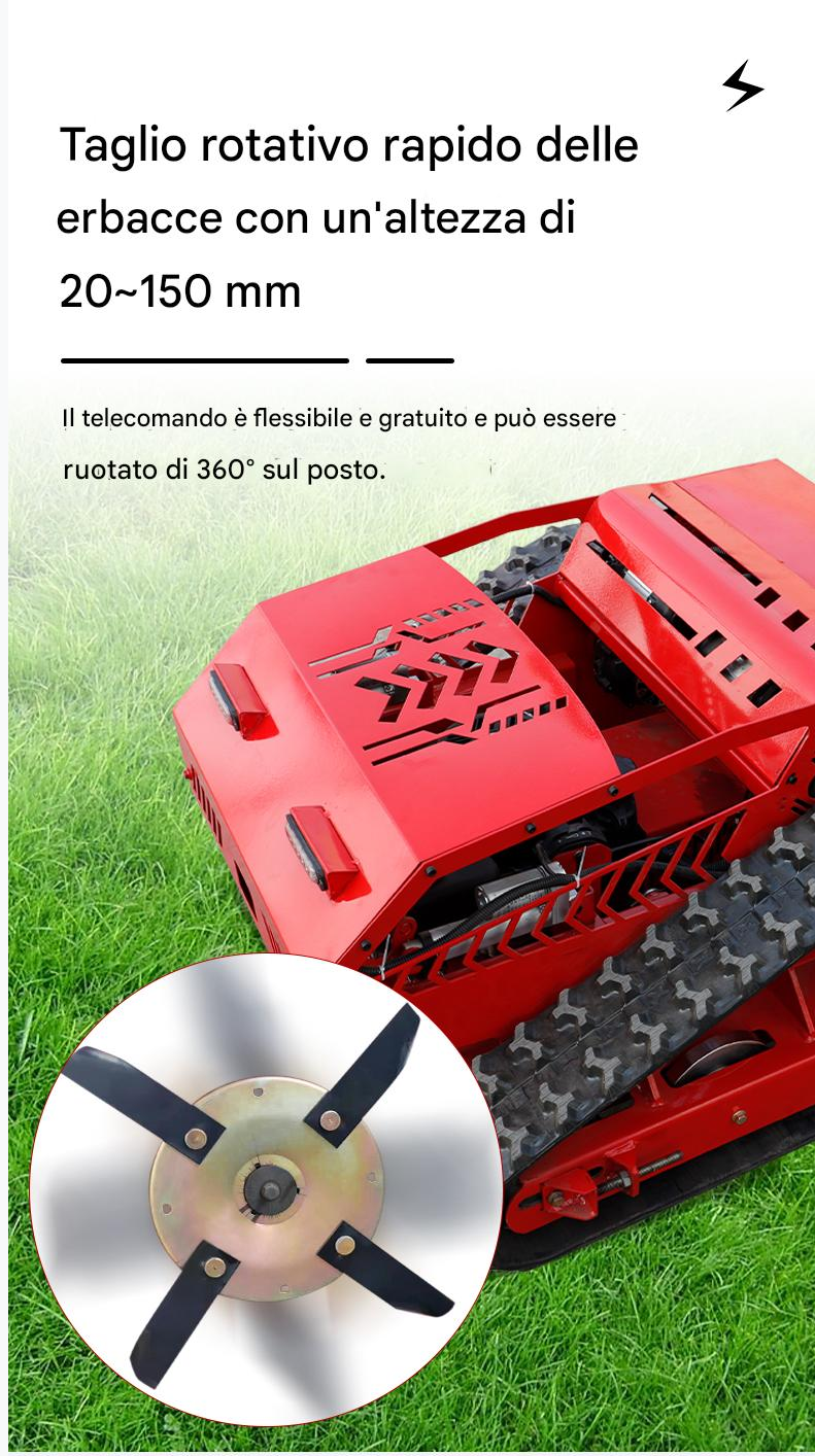 Affronta pendii, frutteti, giardini e prati con precisione con il Sutz750. Alimentato da un motore Loncin da 224 cc e da un motore brushless da 24 V, questo rasaerba ibrido offre un taglio efficiente e telecomandato fino a pendenze di 45°. Con un raggio di controllo di 300 m, una larghezza di taglio di 55 cm e un movimento cingolato, offre un’adattabilità al terreno senza pari. Resistente, auto-ricaricante e compatto, progettato per una gestione del prato ad alte prestazioni.