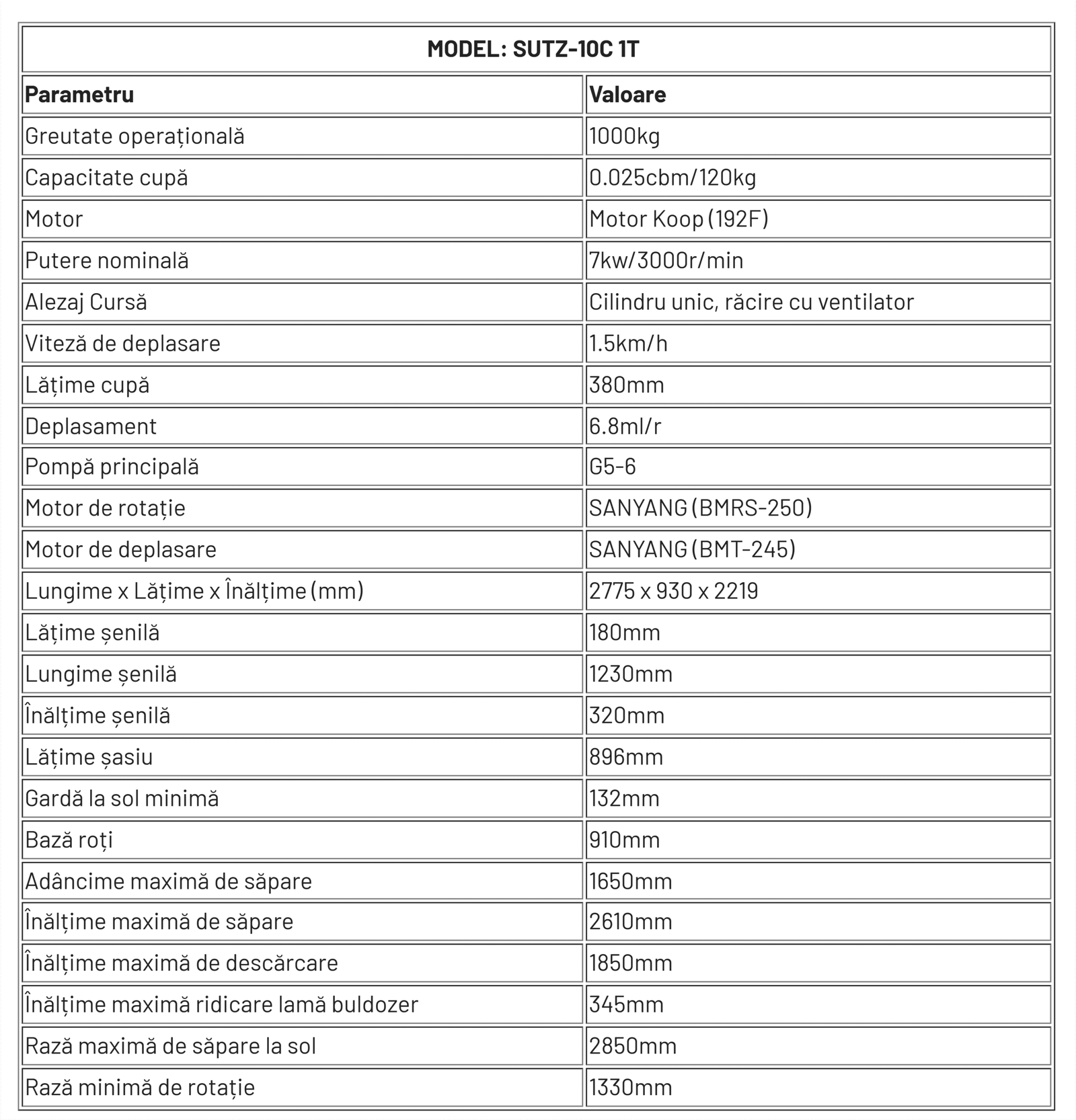 Miniexcavatorul SUTZ-10C 1T este soluția compactă și ecologică supremă pentru săpături de precizie în spații înguste. Datorită designului său ușor (1000 kg), eficienței ridicate a consumului de combustibil și opțiunilor opționale de motor, acesta oferă performanțe fiabile pentru amenajarea peisagistică, agricultură și construcții ușoare. Amprenta sa îngustă (lățime de 930 mm) și adâncimea de săpat de 1650 mm îl fac ideal pentru proiecte urbane unde utilajele mai mari nu pot funcționa. O alegere rentabilă, manevrabilă și cu întreținere redusă pentru antreprenorii care prioritizează portabilitatea și eficiența.