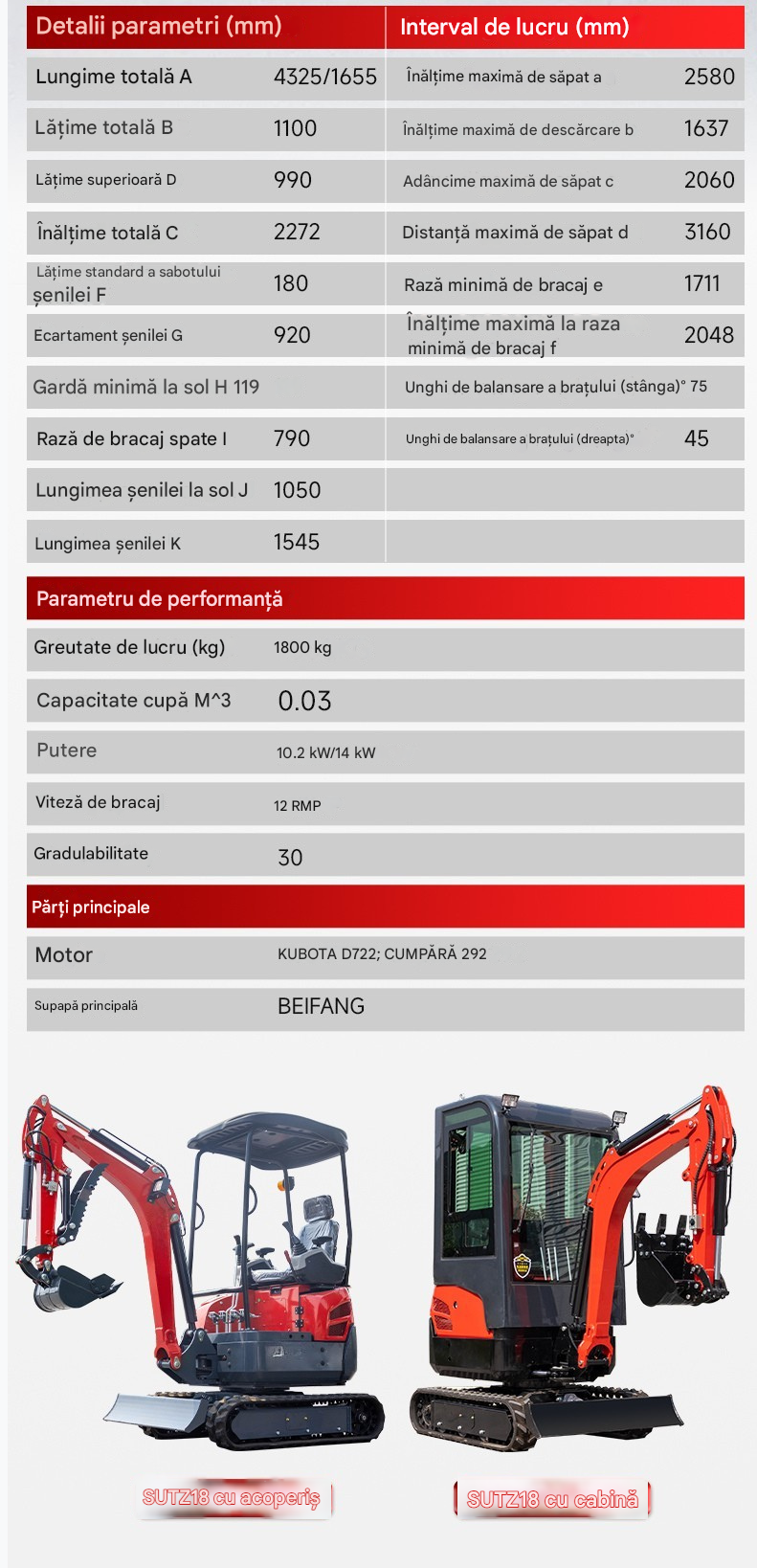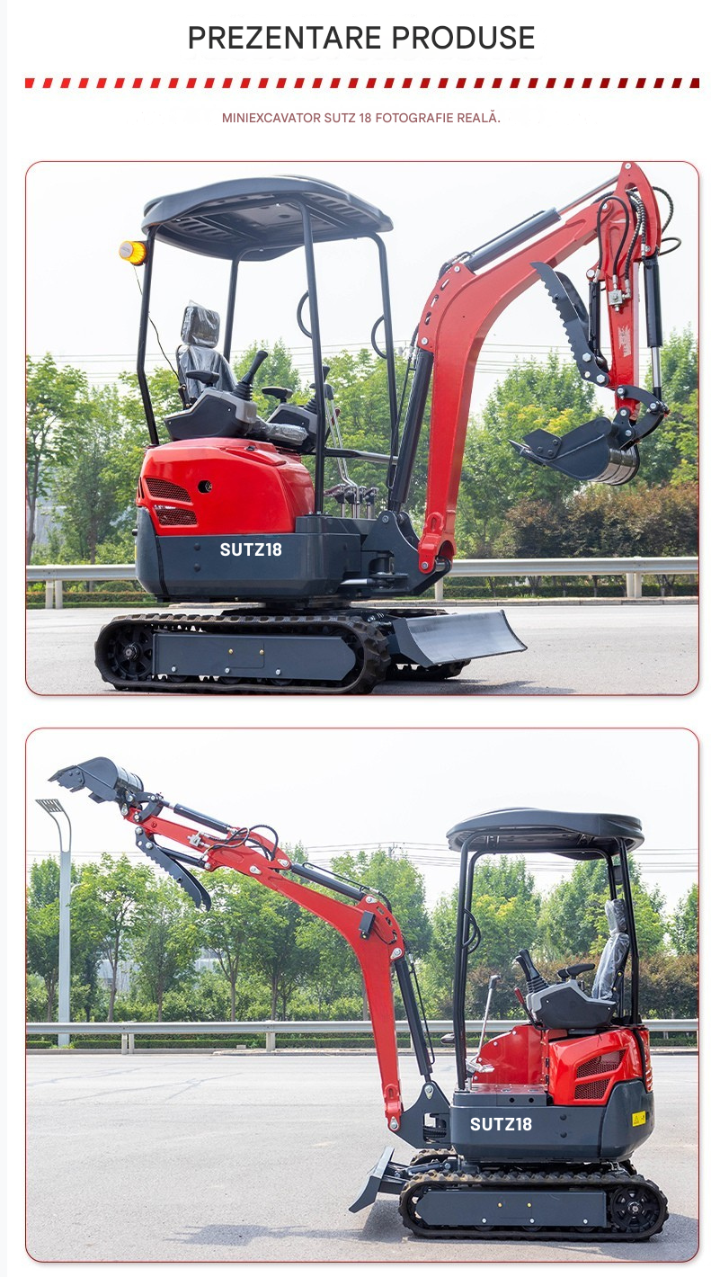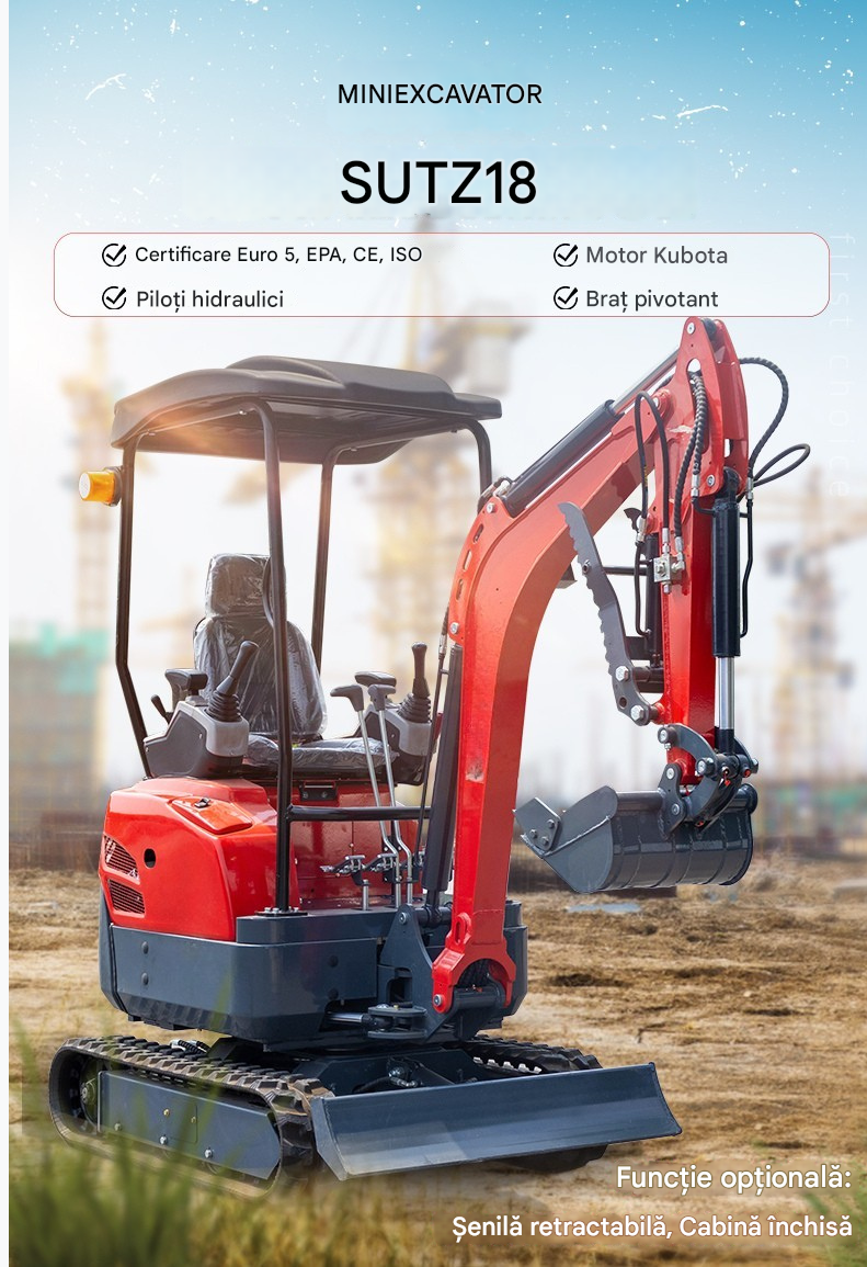 Miniexcavatorul SUTZ18 combină fiabilitatea oferită de motorul Kubota cu ingineria ecologică, oferind o soluție versatilă pentru construcții ușoare și amenajări peisagistice. Amprenta sa compactă, precizia hidraulică și șenilele de cauciuc opționale îl fac ideal pentru terenuri sensibile, în timp ce certificările globale (CE/ISO) asigură o aplicabilitate largă. Conceput pentru eficiență și întreținere redusă, SUTZ18 este o alegere remarcabilă pentru contractorii care acordă prioritate manevrabilității, conformității și rentabilității.