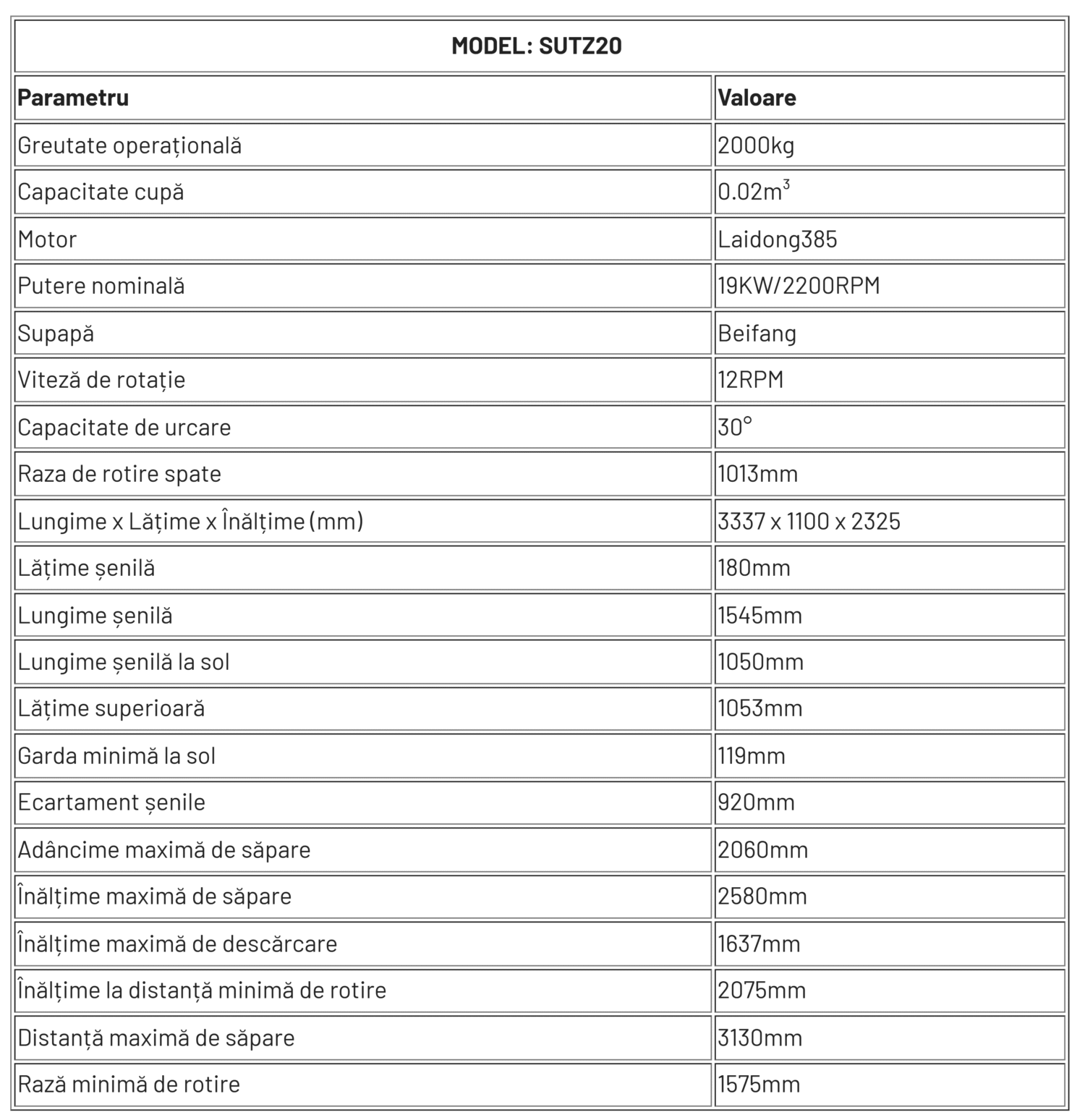 Excavatorul SUTZ20 combină puterea, precizia și adaptabilitatea într-un cadru compact, ideal pentru contractorii care au nevoie de o mașină fiabilă și multifuncțională. Designul său inovator – de la cilindrii cu braț inversat la sistemul hidraulic acționat de pilot – asigură eficiență și ușurință în utilizare, în timp ce construcția robustă garantează longevitatea. Perfect pentru proiecte mici și medii, SUTZ20 excelează prin versatilitate și confortul operatorului, susținut de standardele avansate de fabricație SUTZ.